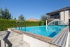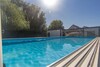Im Gemeinschaftsgarten befindet sich der überdachte Pool (6m x 3,5m x 1,30m) mit Sonnenliegen, sowie ein überdachter Grillplatz.