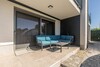 Die Erdgeschosswohnungen verfügen jeweils über zwei überdachte Terrassen (eine zum Pool und eine zum Parkplatz gerichtet), die Obergeschosswohnungen über zwei Balkone (einer zum Pool und einer zum Parkplatz gerichtet).