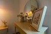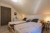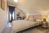 Obergeschoss: In der über die Innentreppe erreichbaren Galerie befindet sich ein gemütlicher Sitzbereich mit Sitzgarnitur und Tisch. Im Obergeschoss sorgt eine leistungsstarke Klimaanlage für angenehme Temperaturen im gesamten Haus. Hier befinden sich zwei weitere Schlafzimmer: eines mit Doppelbett und eines mit zwei Einzelbetten. Beide Zimmer sind mit Kleiderschränken ausgestattet. Das zwischen den Zimmern gelegene zweite moderne Badezimmer mit Dusche und WC ist ebenfalls vom Flur aus zugänglich, um die ungestörte Ruhe in den Schlafbereichen zu bewahren.